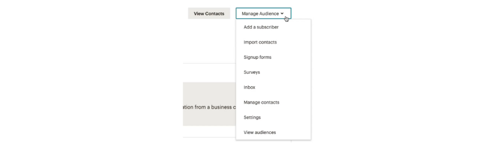 Create Audience: You'll find a drop-down menu on the far right saying 'Manage Audience.' Select 'View Audiences' and click the button 'Create Audience.'